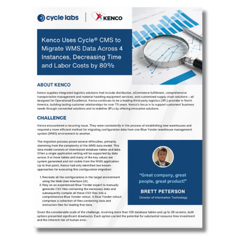Automated software testing is a powerful tool for 3PLs that want to optimize their client onboarding and system upgrade projects. By automating test cases for high-impact processes and client-specific functionality, you can ensure that business growth doesn’t impact existing client relationships. The Cycle platform accelerates your test automation efforts through pre-built utilities and saves you thousands of hours as you expand to new sites or your client requirements change.